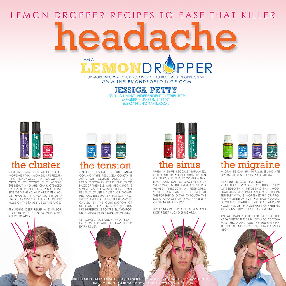 Rub a drop on temples, forehead, back of head and neck for headache relief 54. To stop hiccups, apply a drop on each side of the fifth cervical of Young Living may receive commission on your orders. REFERENCES: Young, N.D., Gary D. An Introduction to Young Living Essential Oils, Ninth ... Retrieve Doc